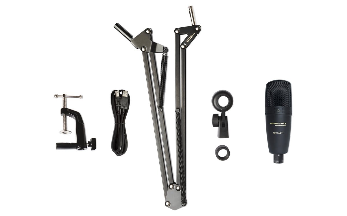 The Pod Pack 1 is a professional upgrade to any announce studio. The kit consists of a high-quality USB condenser microphone paired with a fully-adjustable suspension boom arm, keeping the desk clear and the microphone always in position for podcasting, on-air or voice-over applications. Assembly is a snap and the articulating boom clamps securely to nearly any desk or table surface.